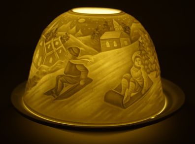 • Dome Light Schlittenfahrt Teelicht Windlicht Rodeln Winter Schlitten Kinder
