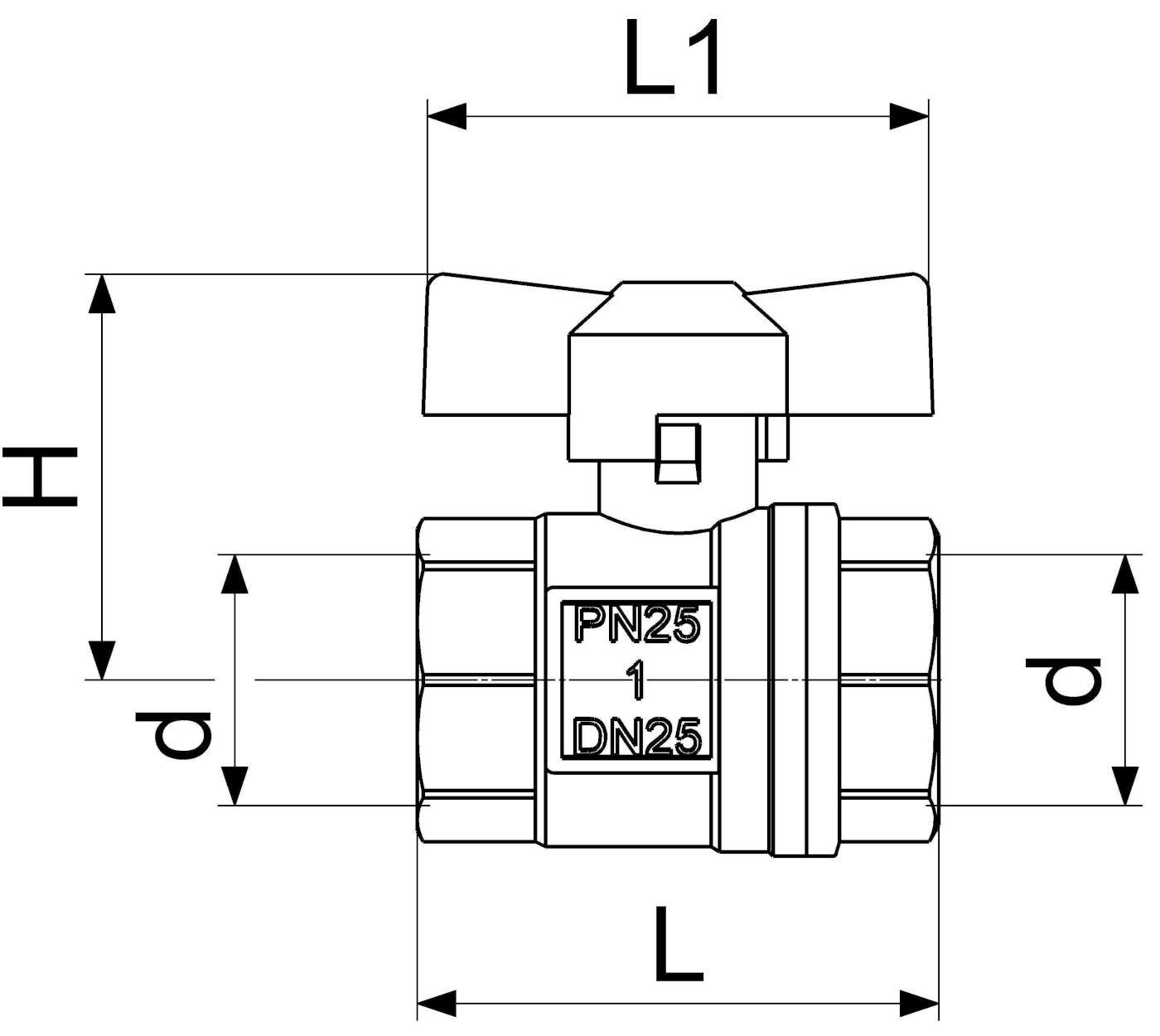 Schlösser Kugelhahn Flügelgriff 1" DN25 IG x IG voller Durchgang schwer