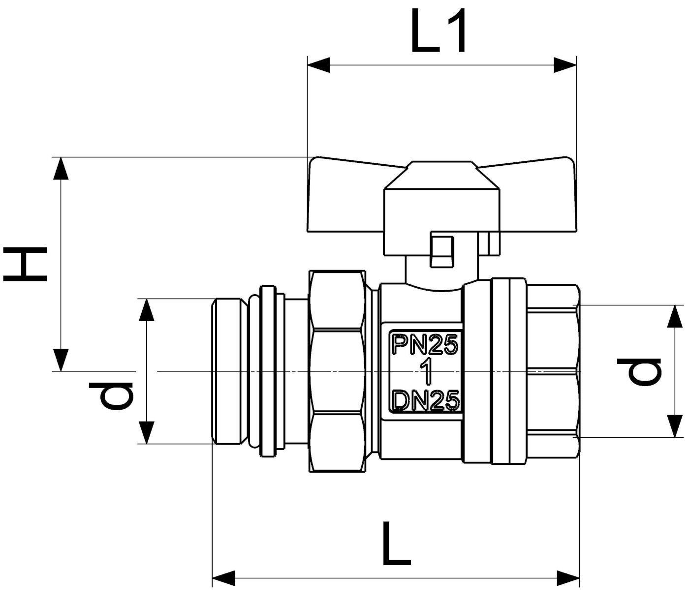 Schlösser Kugelhahn mit Verschraubung 1/2" DN15 IG x AG Flügelgriff