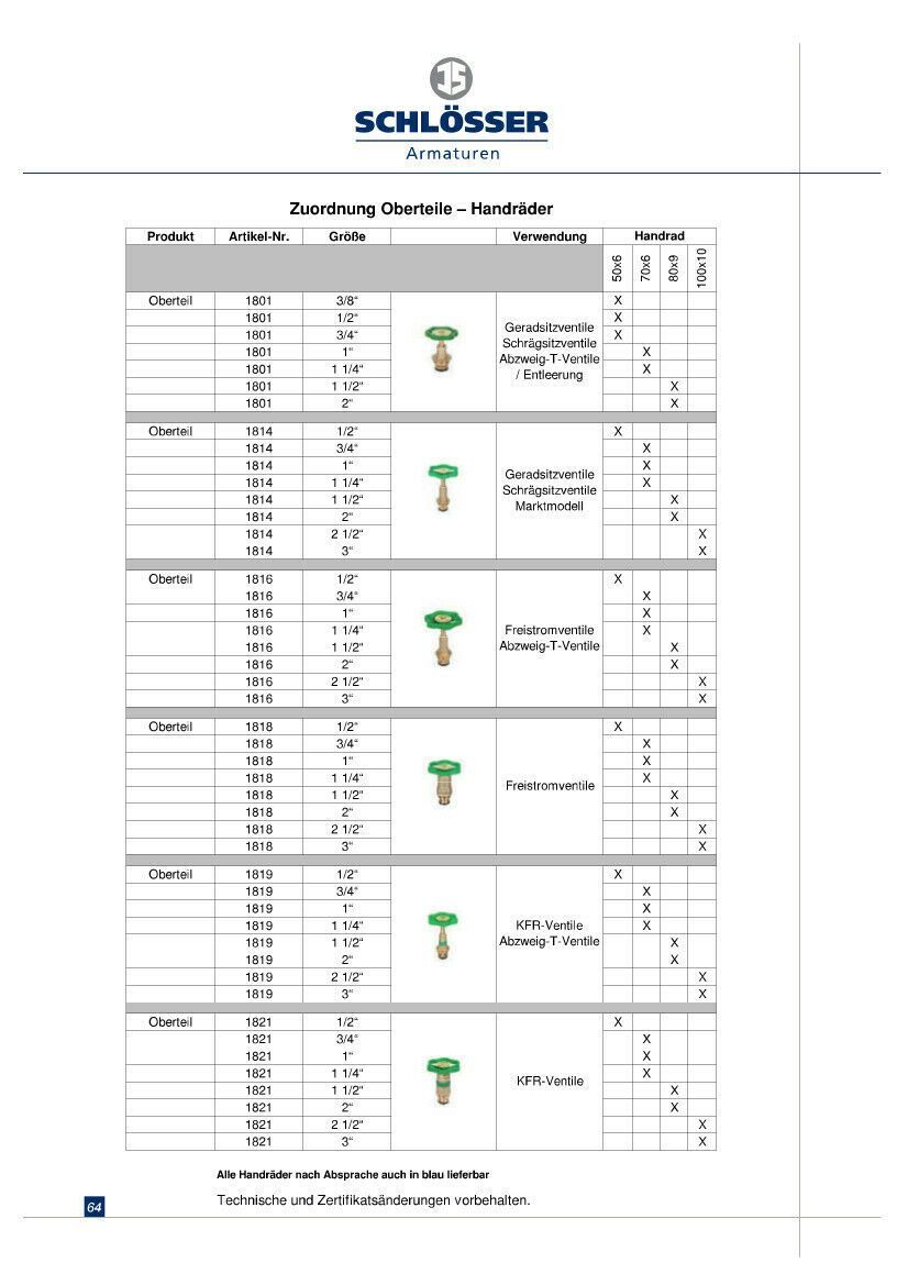 Schlösser Ventiloberteil Durchgangsventil / Schrägsitzventil DN15 1/2" 180115