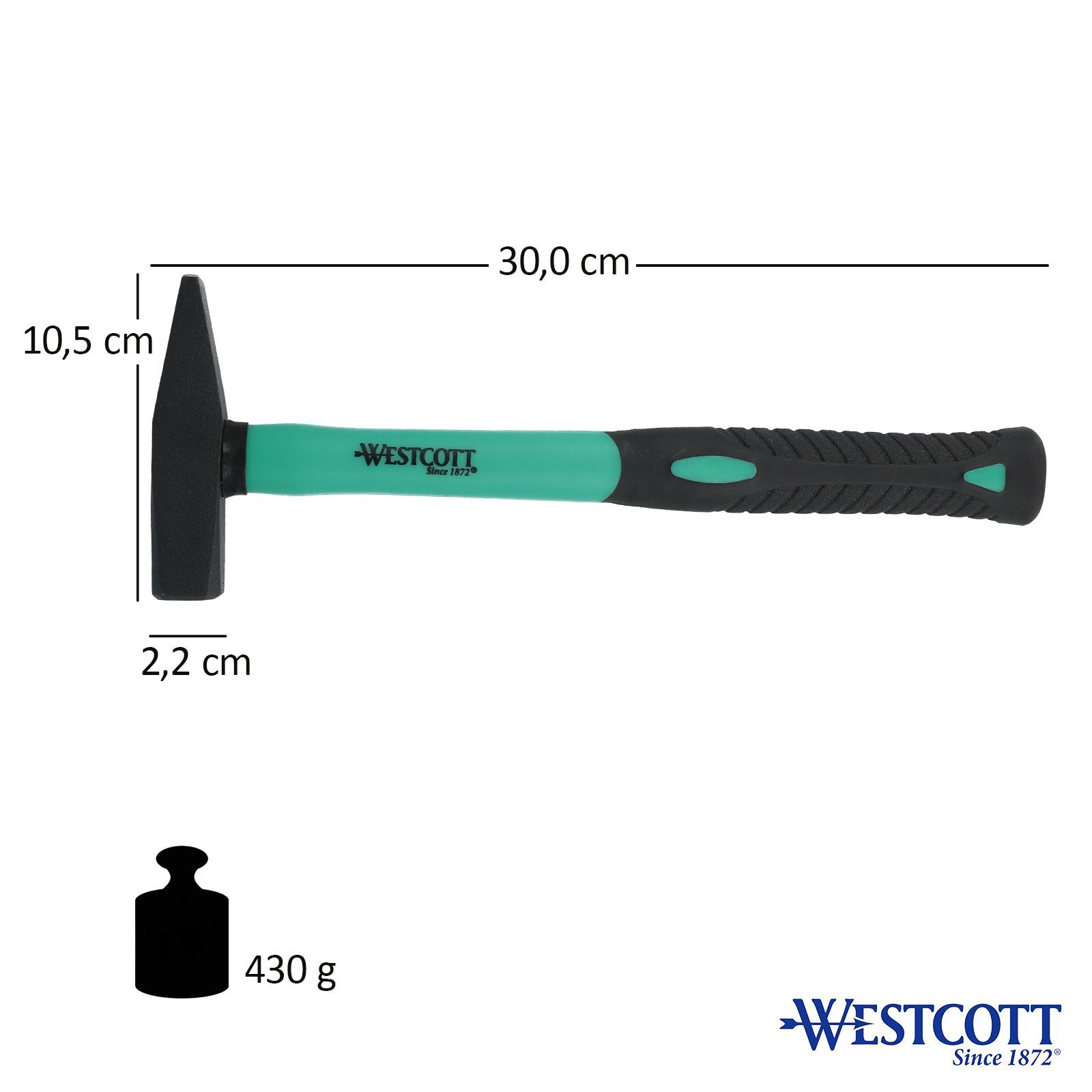Westcott Schlosserhammer 300gr Hammer Fiberglasstiel Antirutschgriff Werkstatt DIN 1041