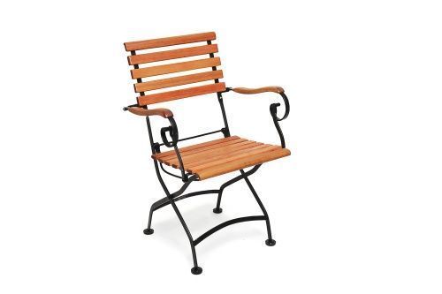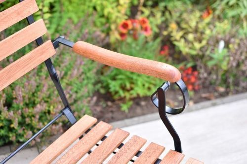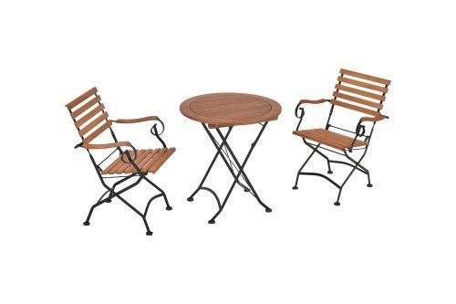 Merxx Schlossgarten Set 3tlg., 2 Klappsessel, Klapptisch Ø 70 cm, Flachstahl/Eukalyptus