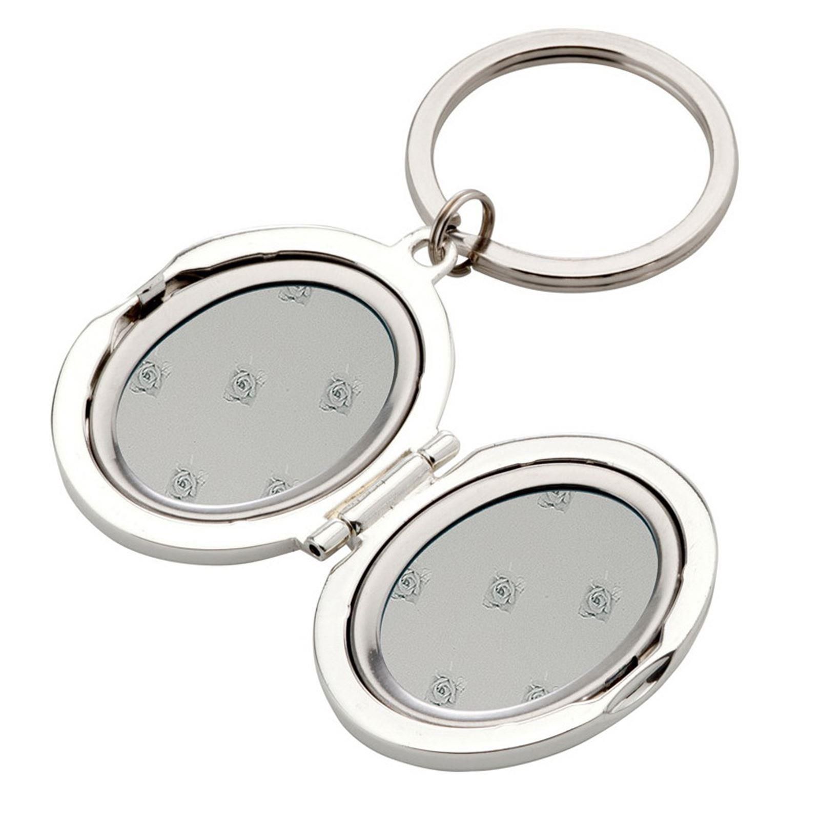 Schlüsselanhänger 3.5 x 4.5 cm oval versilbert klappbares Medaillon für 2 Fotos