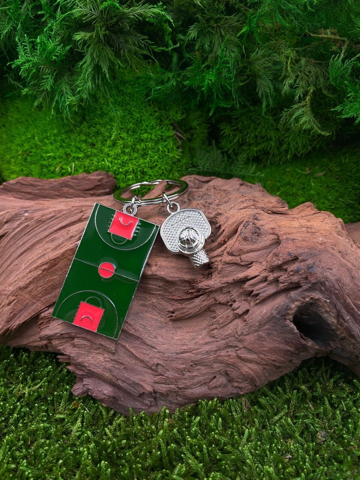 Schlüsselanhänger Basketballfeld Spielfeld Rasen Grün Anhänger Keychain