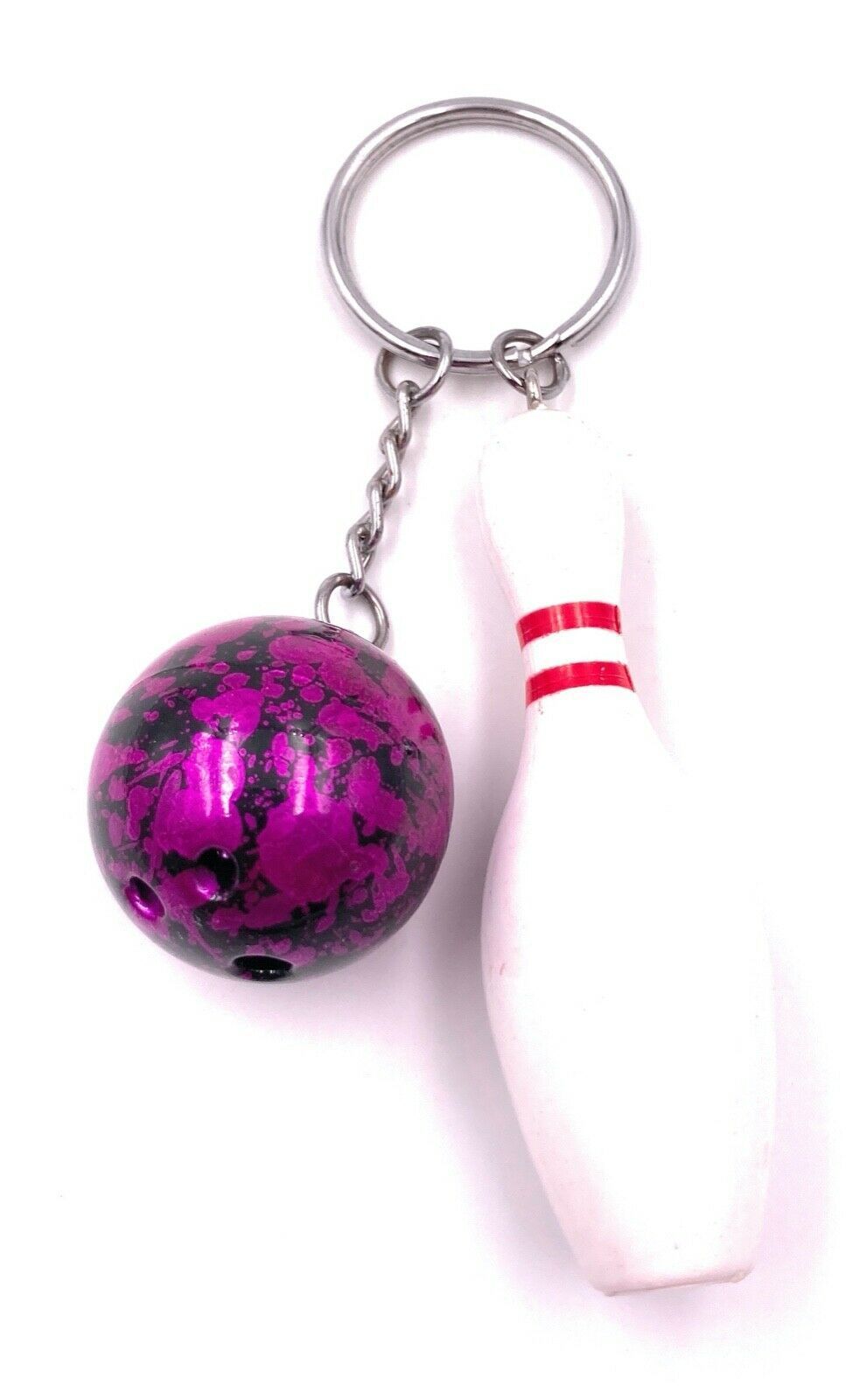 Schlüsselanhänger Bowling Pin Kugel Set Blau Grün Pink Anhänger Keychain