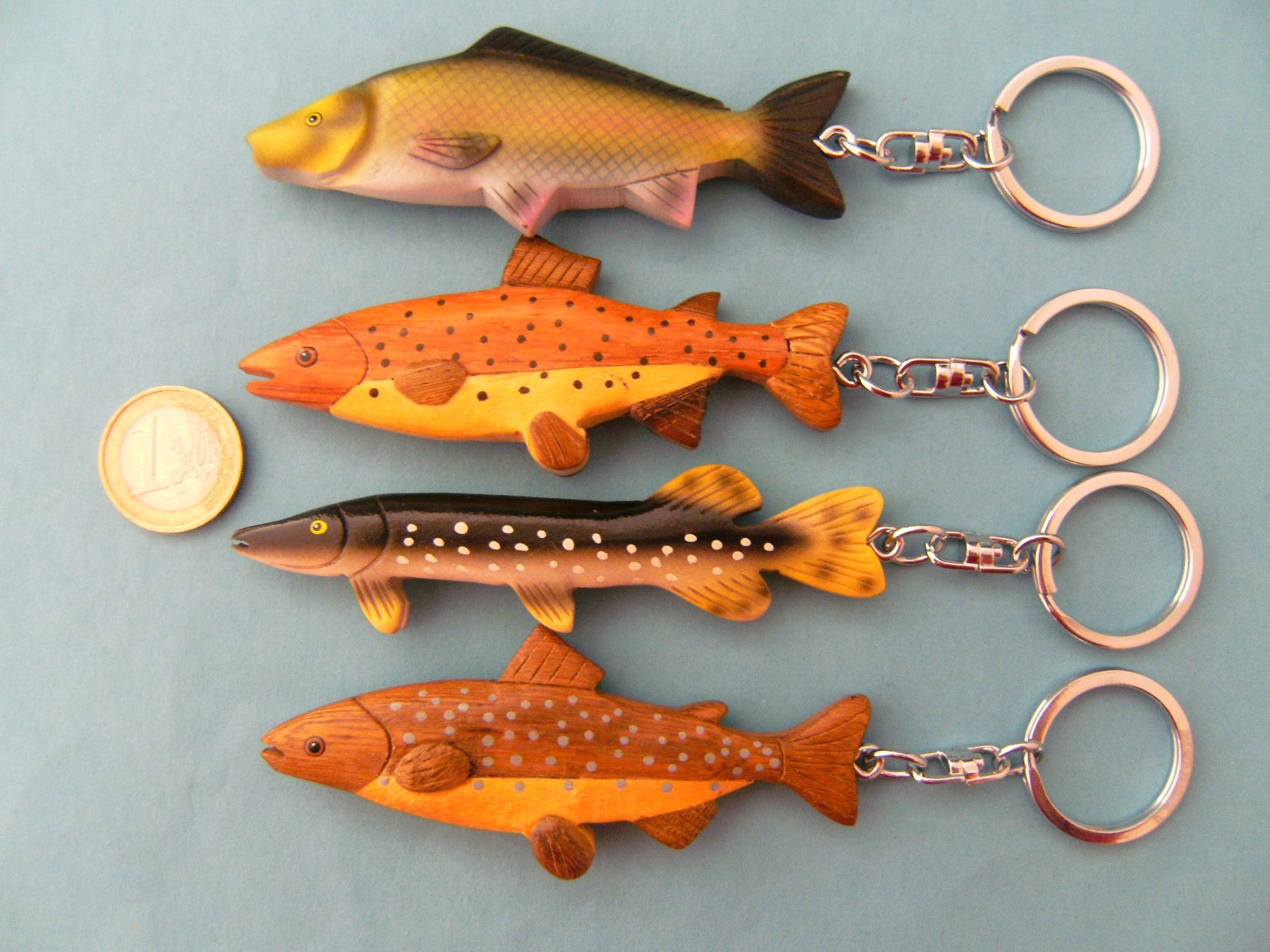 Schlüsselanhänger Fische Schlüsselring Talisman Rucksackanhänger Holz Metall Angler