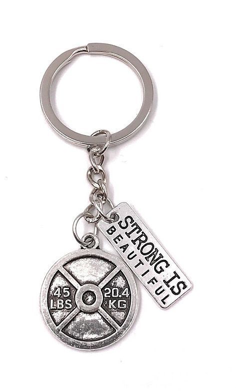 Schlüsselanhänger Hantel Gewicht Strong is Beatifull Metall Anhänger Charm