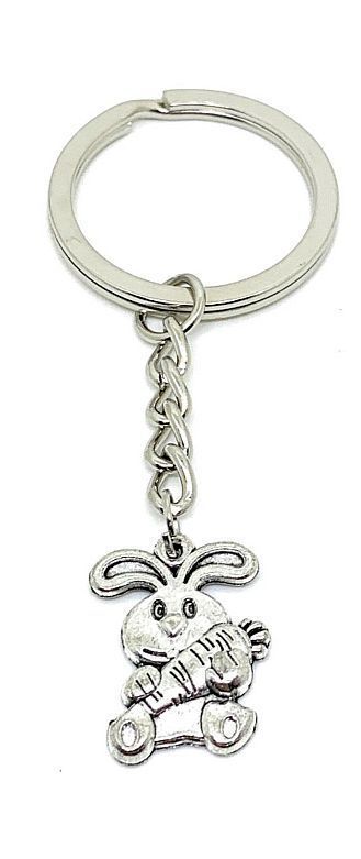 Schlüsselanhänger Hase mit Karotte am futtern Silber Metall Anhänger Charm