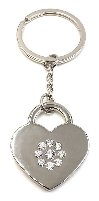 Schlüsselanhänger Herz mit Kristallen in der Mitte Silber Metall Anhänger Charm