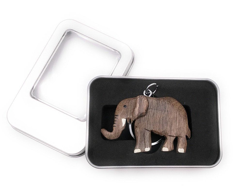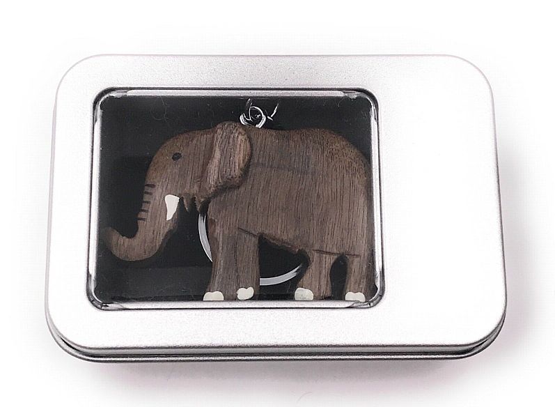Schlüsselanhänger Holz Elefant Rüsseltier Landtier Dickhäuter in Geschenkbox