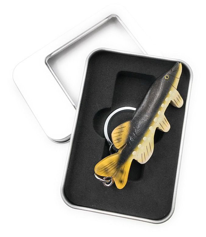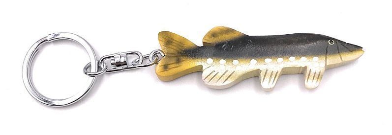 Schlüsselanhänger Holz Hecht Fisch Wasser Tier Raubfisch in Geschenkbox