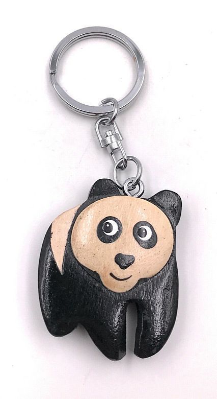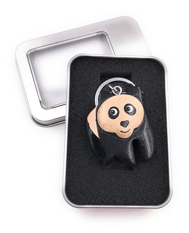 Schlüsselanhänger Holz Panda Bär Säugetier Raubtier Bambus in Geschenkbox
