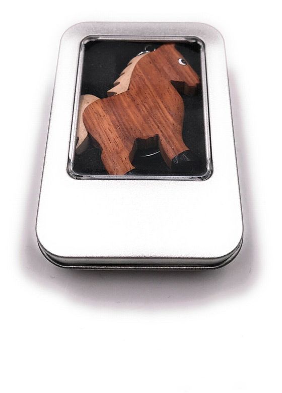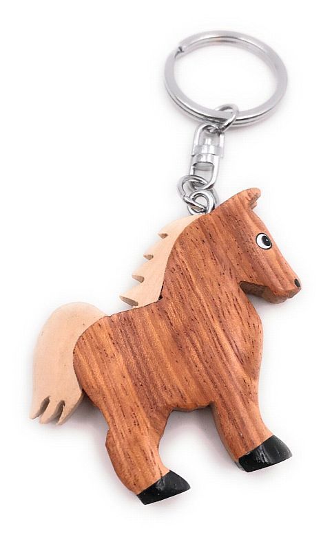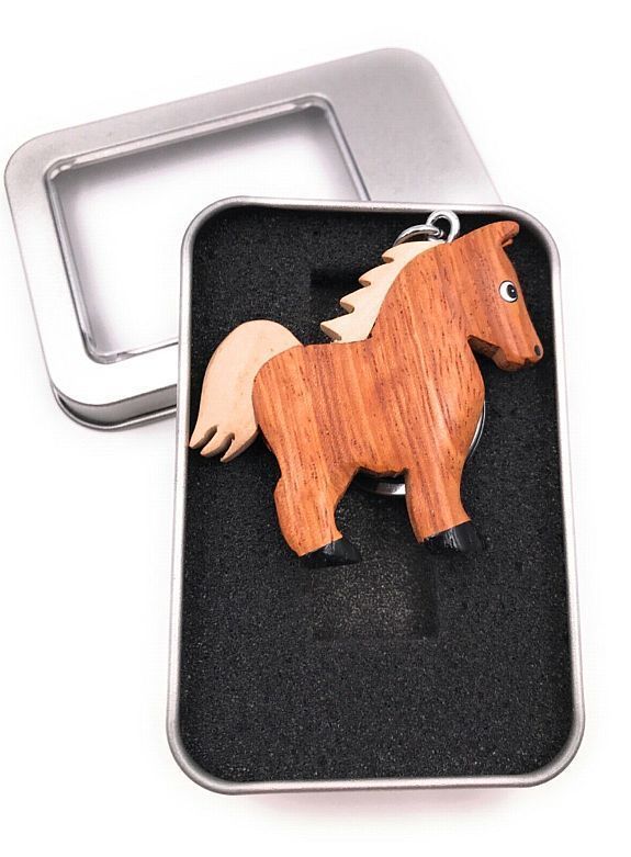 Schlüsselanhänger Holz Pferd Pony dunkel Nutztier Bauernhof Ross in Geschenkbox
