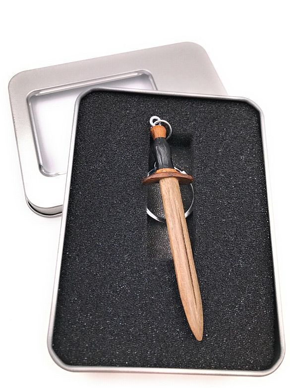 Schlüsselanhänger Holz Schwert Waffe Kampf Ritter Mittelalter in Geschenkbox