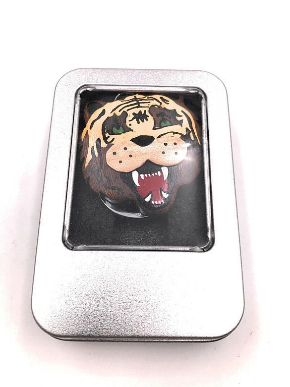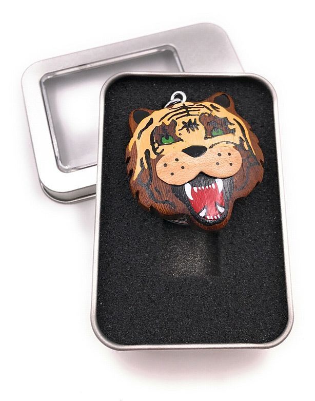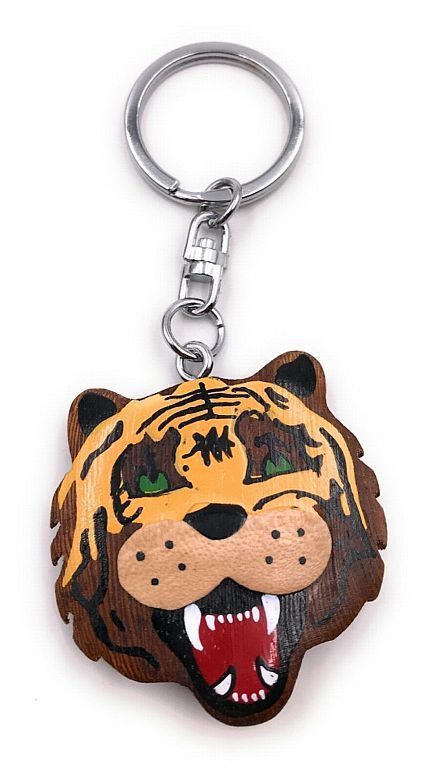Schlüsselanhänger Holz Tigerkopf brüllend Großkatze Raubkatze in Geschenkbox