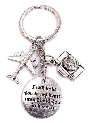 • Schlüsselanhänger Reise Andenken Flugzeug Kamera Silber Metall Anhänger Charm