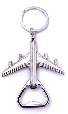 • Flugzeug 4 Turbinen Flaschenöffner Schlüsselanhänger Keychain Silber Metall
