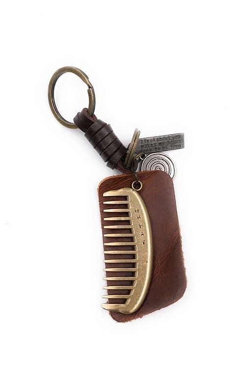 Schlüsselanhänger Kamm Leder Frisur Haare Pflege Metall Anhänger Charm
