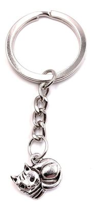 • Schlüsselanhänger Grinse Katze Haustier Cat silber Metall Anhänger Charm
