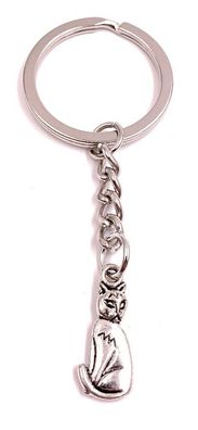 • Schlüsselanhänger Katze Haustier Stubentiger Kater silber Anhänger Keychain