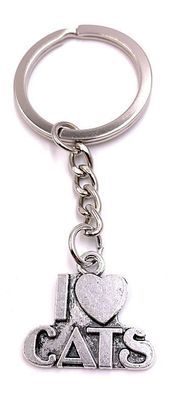 • Schlüsselanhänger I liebe Katzen Katzenliebhaber Silber Metall Anhänger Charm