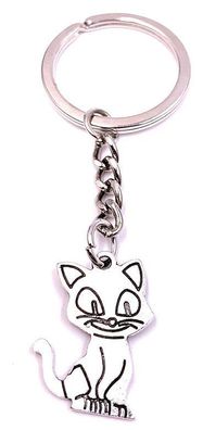 • Schlüsselanhänger Keychain Silber Metall Katze Grinsend sitzend mit Schnurrbart