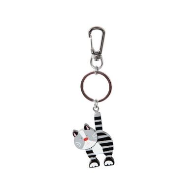 • Handmade Holz Schlüsselanhänger Katze gepunktet Haustier Hauskater Kater