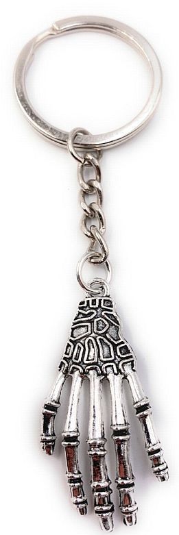Schlüsselanhänger Keychain Silber Metall Hand Knochen Skelett Anhänger