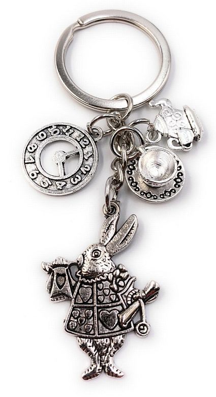 Schlüsselanhänger Keychain Silber Metall Osterhase Uhr Tee Hase Anhänger Tripple