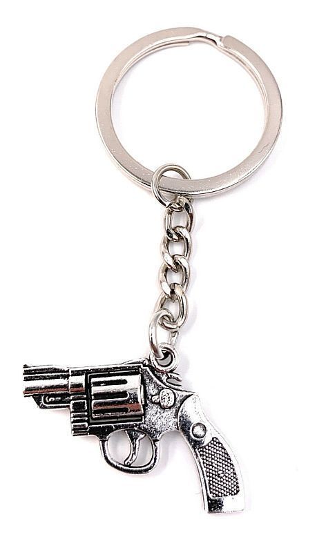 Schlüsselanhänger Keychain Silber Metall Revolver Pistole Gun Crime Anhänger