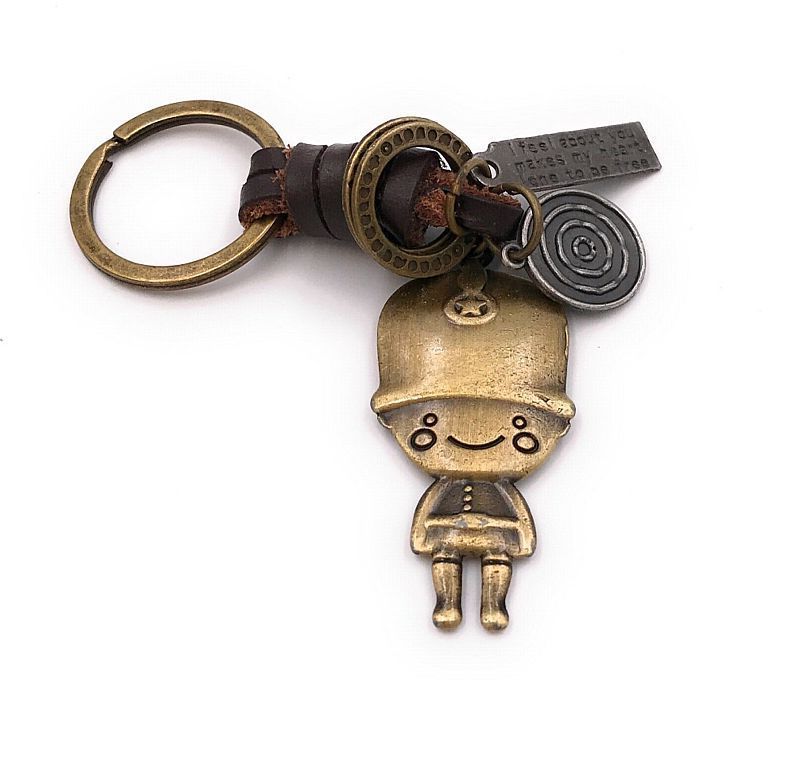 Schlüsselanhänger Kleinkind Kind Junge mit Cap bronze Leder Anhänger Keychain