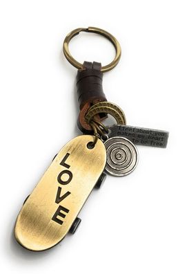 • Schlüsselanhänger Skateboard love Edel Golden Metall Anhänger Charm