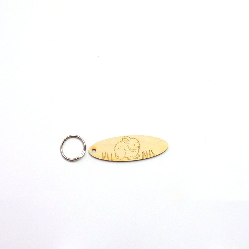 Schlüsselanhänger mit Hasen im Gras sitzend aus Holz Geschenkidee Mitbringsel