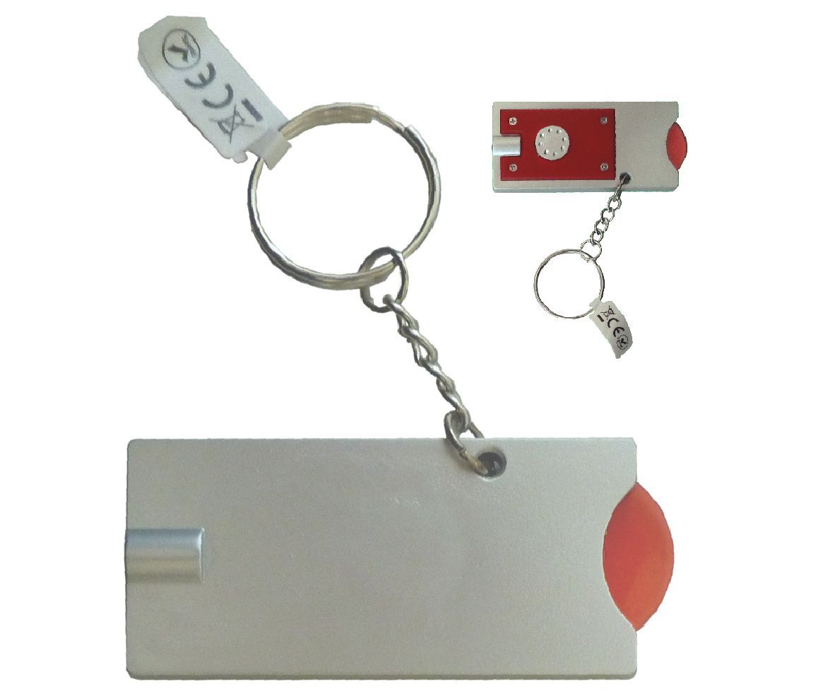 Schlüsselanhänger mit integrierter LED-Leuchte und Einkaufschip mit stabilem Schlüsselring Größe: 60 x 27 mm