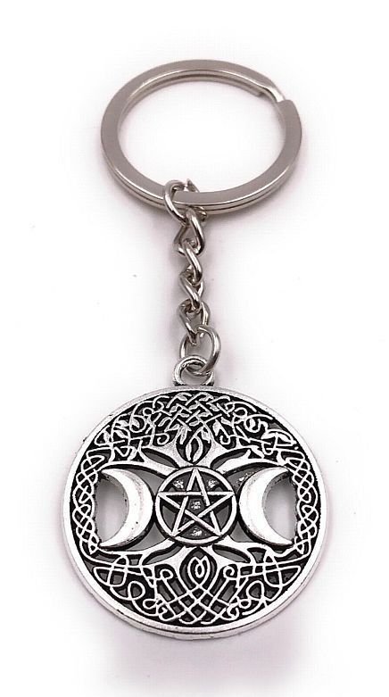 Schlüsselanhänger Mond Judenstern Muster im Kreis silber Anhänger Keychain