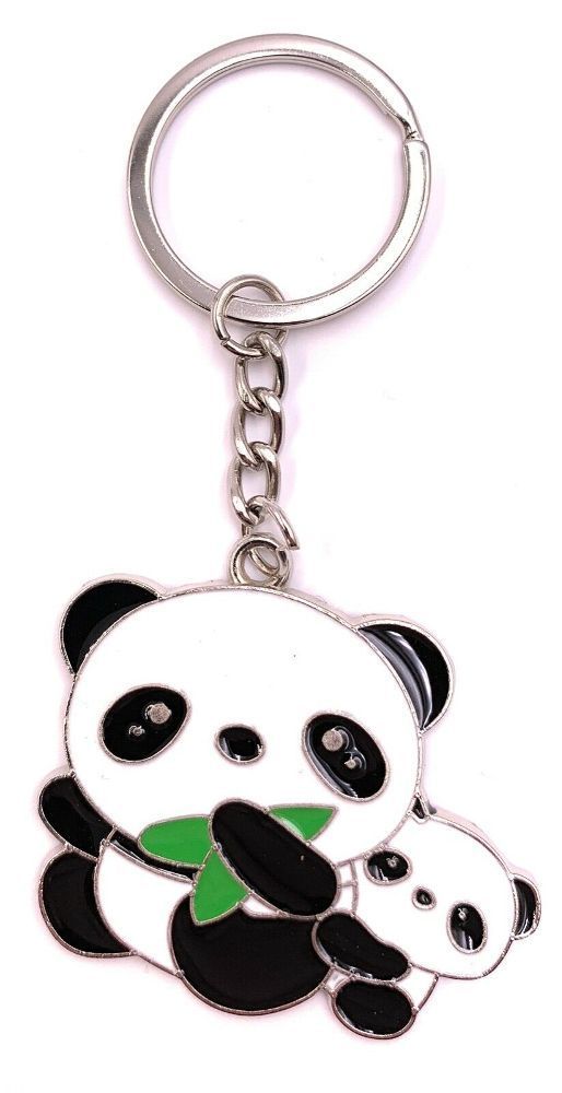 Schlüsselanhänger Panda Bär mit kleinem Kind Metall Anhänger Charm