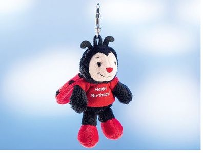 • Schlüsselanhänger Plüsch Marienkäfer mit Shirt " Happy Birthday "