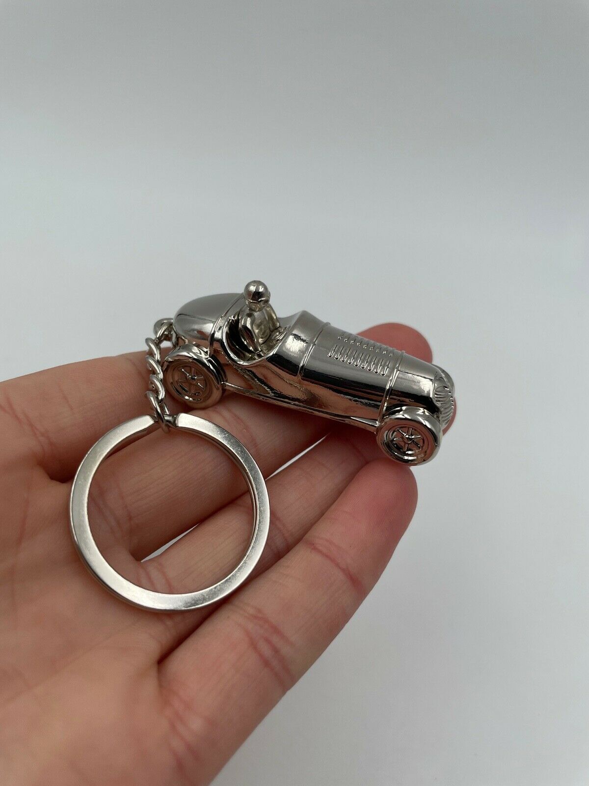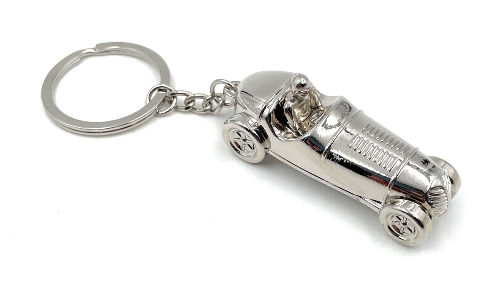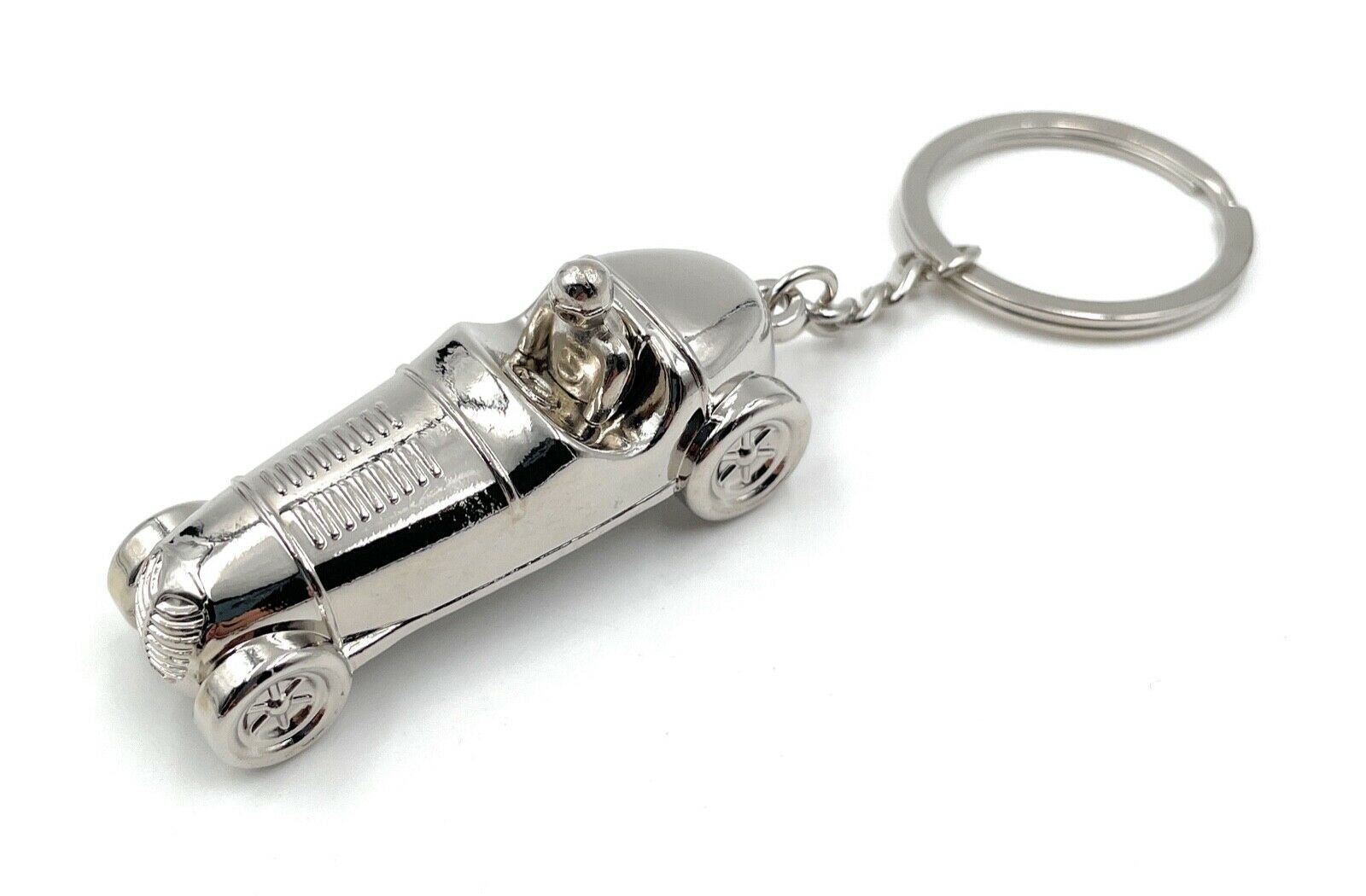 Schlüsselanhänger Rennwagen Auto Rennfahrer Silber Anhänger Keychain