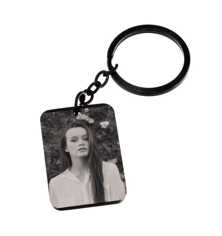 Schlüsselanhänger schwarz 26x38mm mit Fotogravur