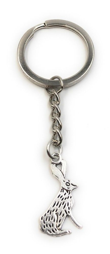 Schlüsselanhänger Sitzender Hase Ostern Silber Metall Anhänger Charm