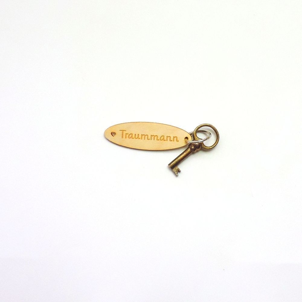 Traummann Der Schlüsselanhänger mit Schlüsselring ist aus 3mm starkem Birkenholz gefertig und sehr stabil! Die Aufschrift ist so graviert, daß man im Falle einer Verschmutzung den Anhänger mit etwas Schleifpapier wieder reinigen kann. Anzahl: 1 Stück Breite: 8cm Höhe: 2,5cm Stärke 3mm Farbe: Natur M