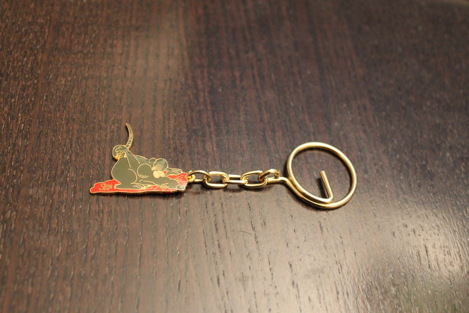 Schlüsselanhänger Uli Stein "Maus"; Vintage-Schlüssel-Anhänger, Metall, schwarz, rot