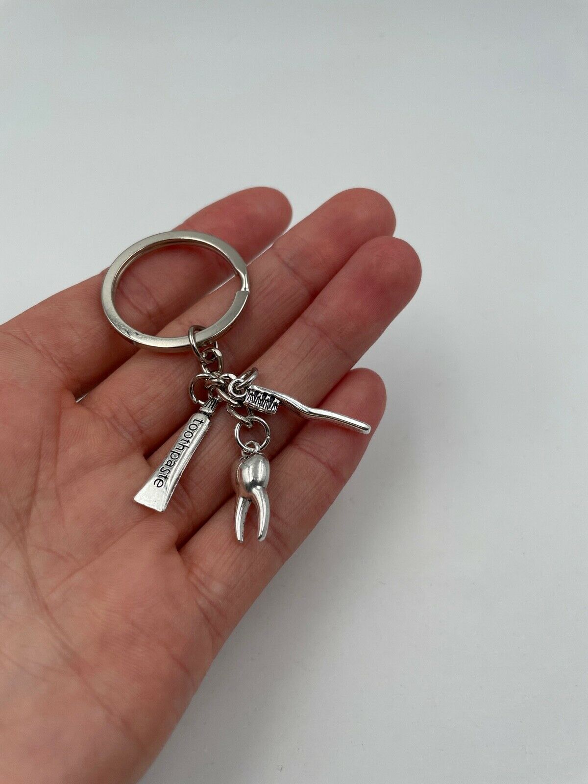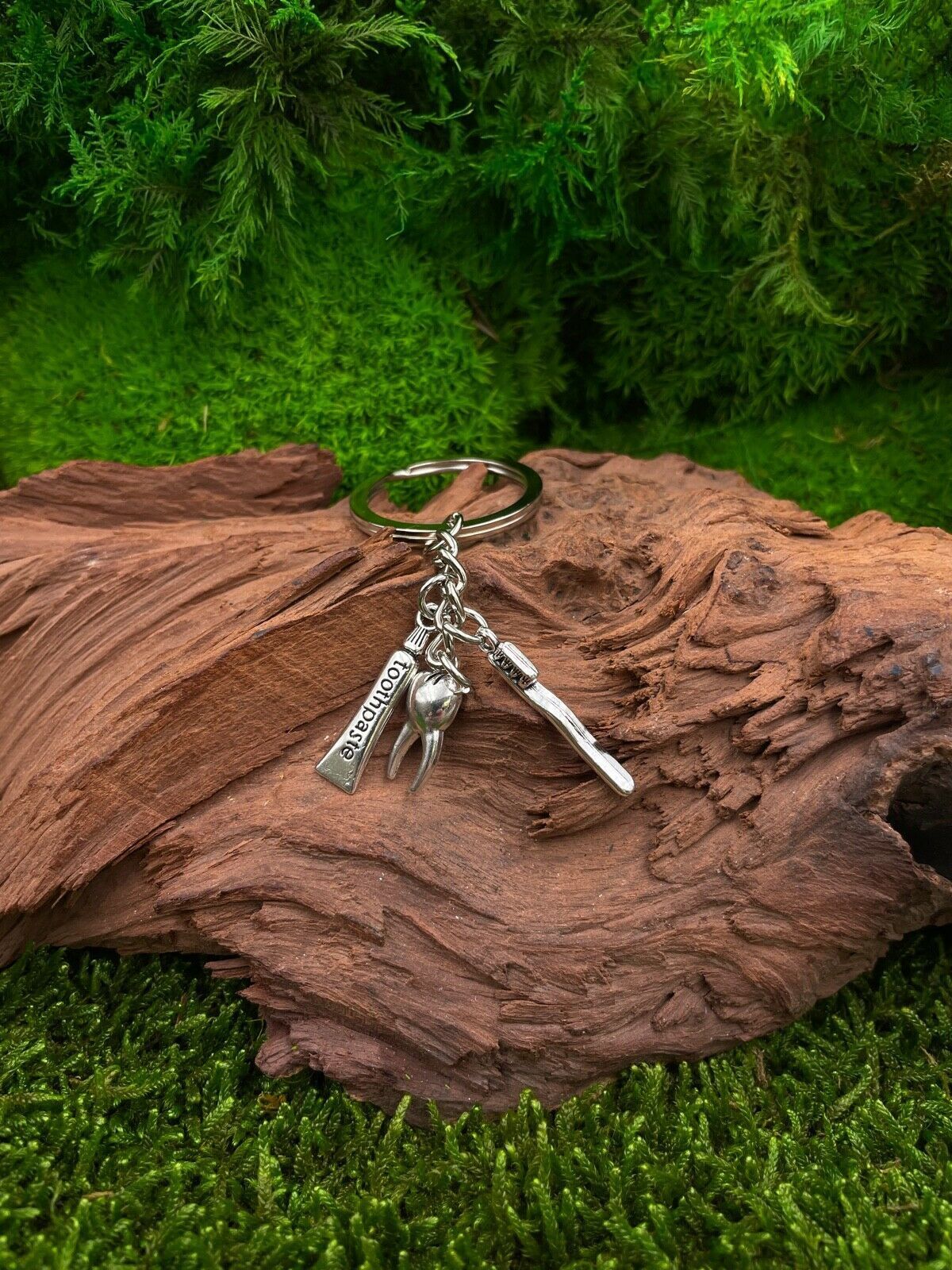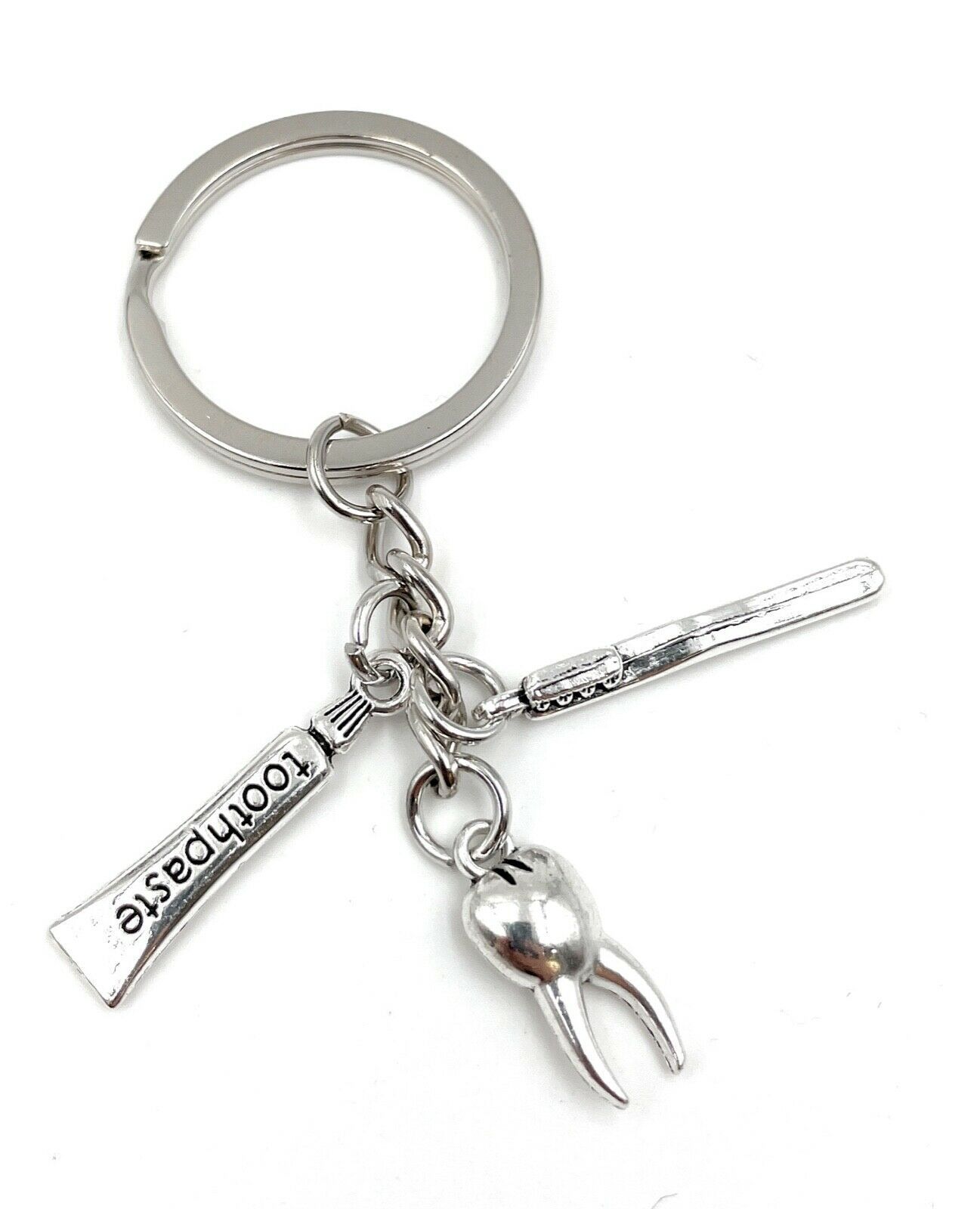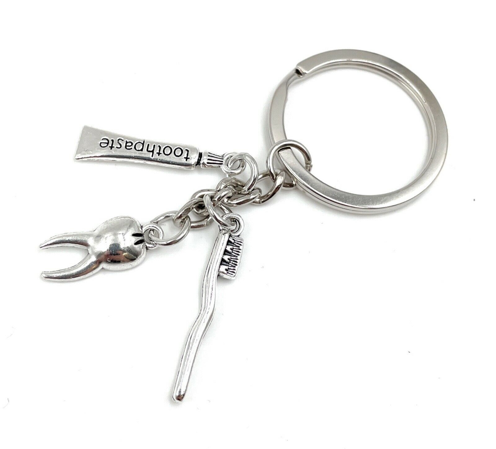 Schlüsselanhänger Zahn Zahnbürste Zahnfee Zahnpasta Pflege Metall Anhänger Charm