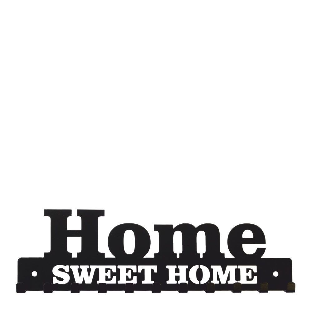 Schlüsselbrett Home sweet Home - schwarz mit 11 Schlüsselhaken Garderobe Hakenleiste