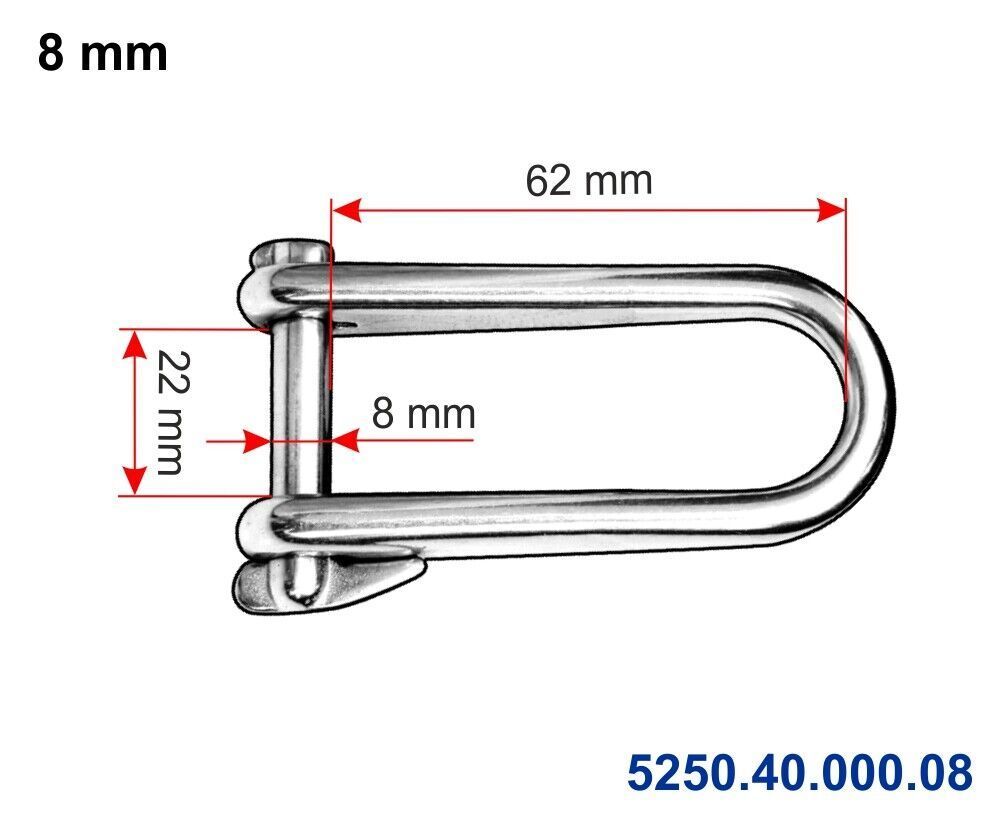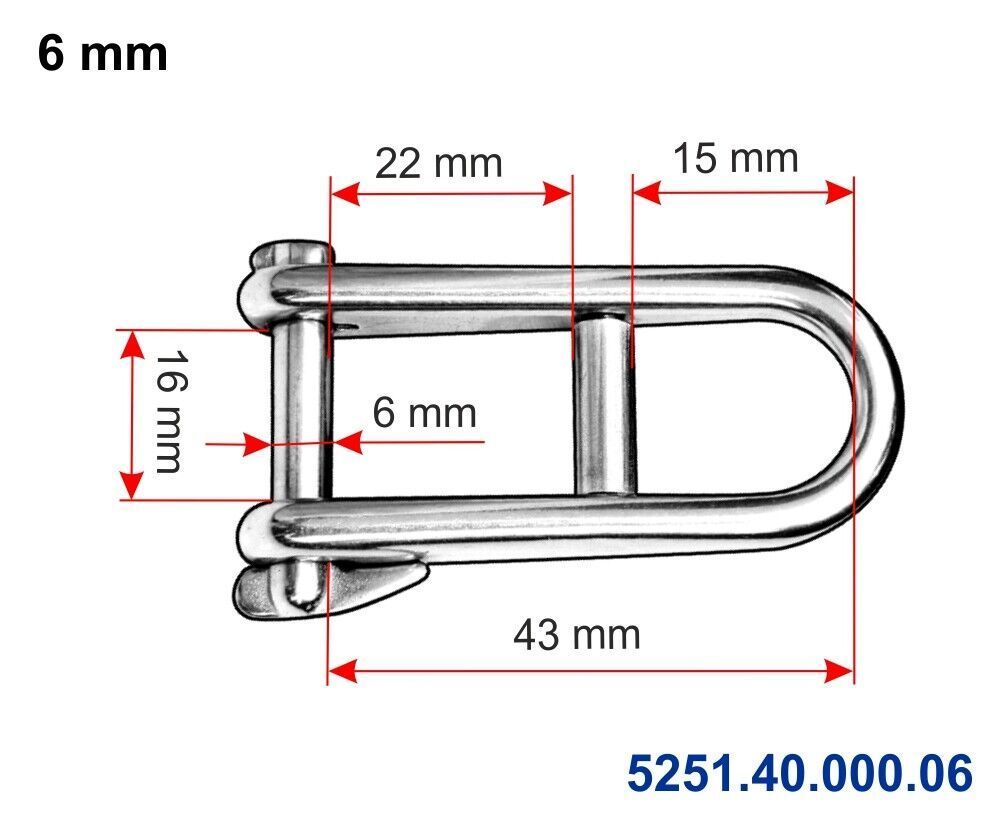 Artikel: Schlüsselschäkel Ausführung: mit Steg oder ohne Steg glänzend poliert rostrei Material: V4A Edelstahl stainless steel AISI 316 Artikel-Nr.: Preis VPE 5250.40.000.05 2,56 € 5250.40.000.06 3,74 € 5250.40.000.08 4,80 € 5251.40.000.05 3,22 € 5251.40.000.06 4,66 € 5251.40.000.08 6,11 €