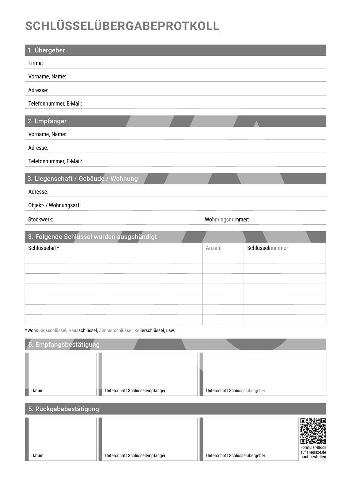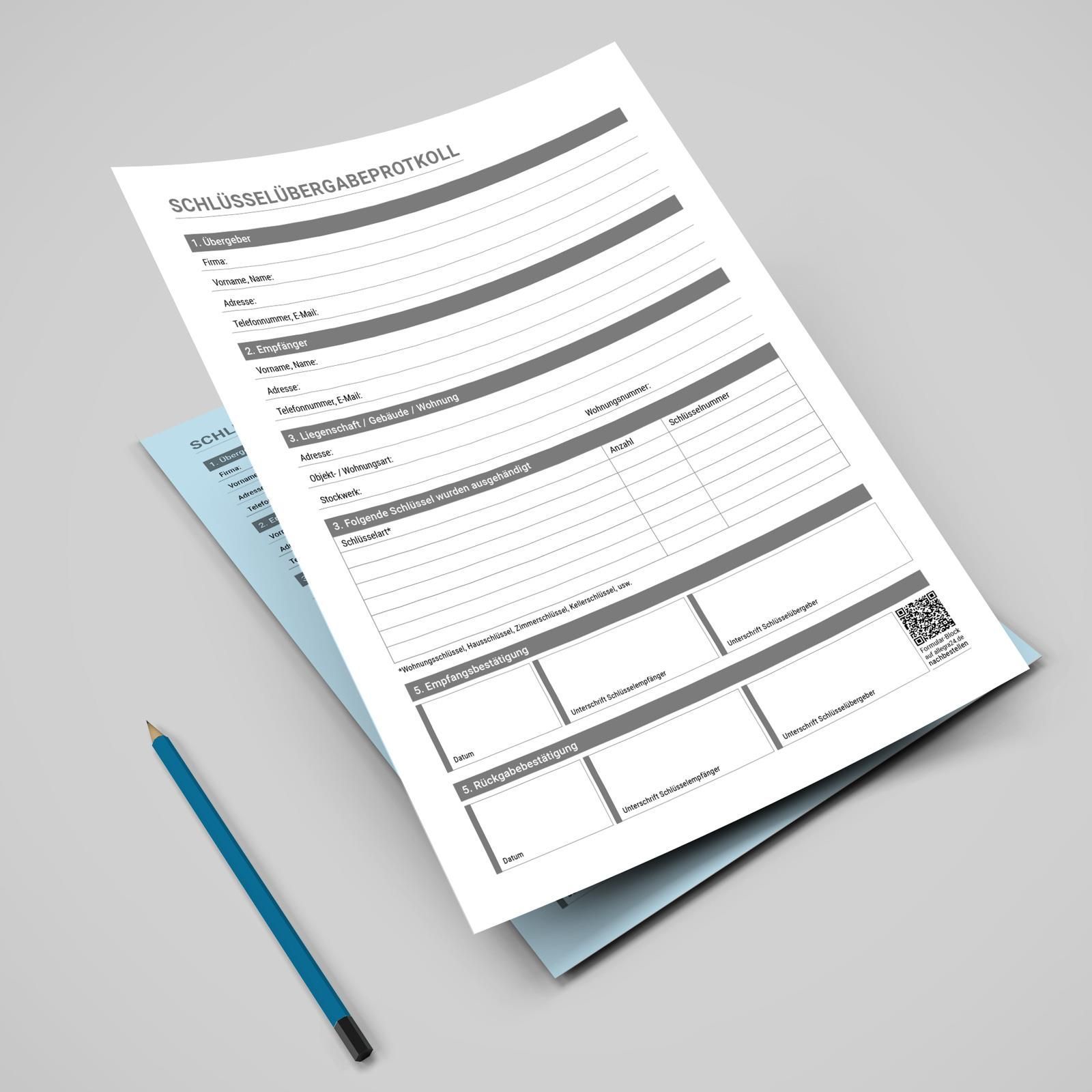 Schlüsselübergabeprotokoll A4-Block selbstdurchschreibend