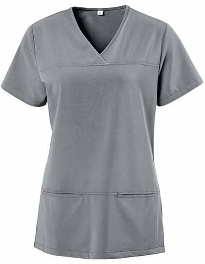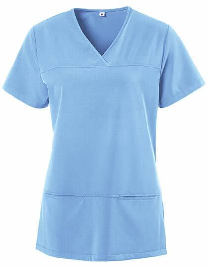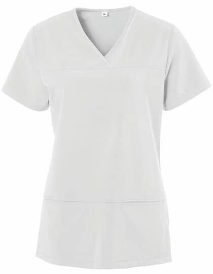 Damenmodell V-Ausschnitt Tailliert Seitenschlitze Zwei Paspeltaschen Vorder- und Rückenpasse Rückenlänge bei Größe M: 71 cm REACH Produktart: Hemden Geschlecht: Damen Material: 73% Polyester 22% Viskose 5% Elasthan Grammatur: 180 g m² Herstellungsland: China