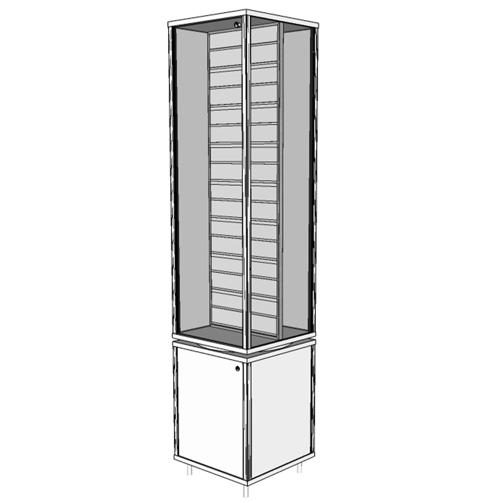 schmale drehbare Glasvitrine 40 cm & Unterschrank & Lamellenwand LED beleuchtet