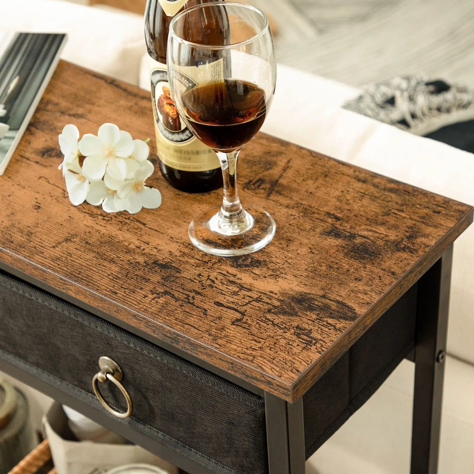 Dieser schmale Konsolentisch verfügt über 2 geräumige Schubladen und zusätzliche Ablagen. Ideal als dekorativer Sofatisch, praktischer Eingangstisch oder stilvolles Bücherregal für Wohnzimmer, Diele und Flur.
