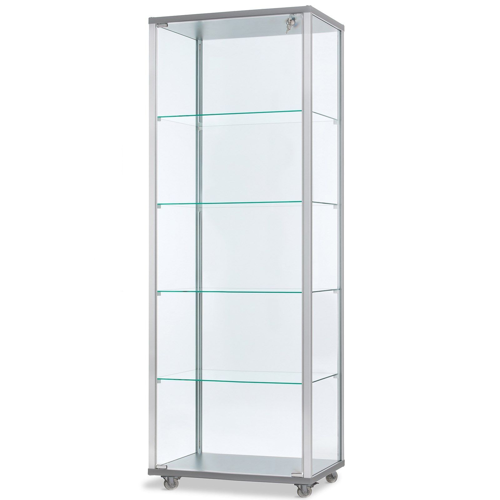 schmale verschließbare beleuchtete Glasvitrine 60 x 40 cm stehend auf Rollen